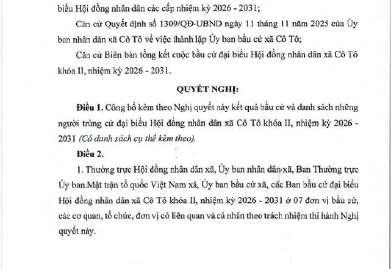 Danh sách chính thức những người ứng cử đại biểu Hội đồng nhân dân xã Cô Tô khóa II, nhiệm kỳ 2026 – 2031 theo từng đơn vị bầu cử đã được niêm yết công khai tại các khu vực bỏ phiếu và đăng tải trên các phương tiện thông tin của địa phương.